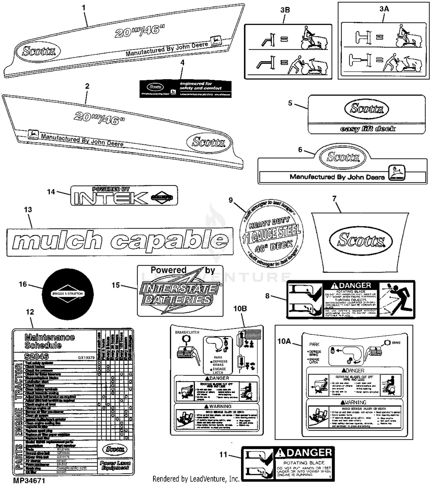 Diagram group L2048 Scotts Lawn Tractor with 48-inch Mower Deck John Deere : 20 ENGINE CCE. 30 FUEL AND AIR CCE. 40 ELECTRICAL CCE. 50 POWER TRAIN CCE. 60 STEERING AND BRAKES CCE. 80 WHEELS, FRAME AND OPERATOR'S STATION CCE. 85 MOWER DECK AND LIFT LINKAGE CCE. 90 LABELS CCE. Scotts S1642, S1742, S2046 REPLACEMENT PARTS. REPLACEMENT PARTS, Service Literature, John Deere Quality John Deere Leveling Gauge for Mower Deck Blade Height - AM130907. (68) $7.15. Usually available. Add to Cart. Quick View. John Deere Mower Blade 46-inch Deck - M127466. (2) Scotts S2046 Deck Belt Diagram. 07.12.2018. 07.12.2018. 1 Comments. on Scotts S2046 Deck Belt Diagram. Deck Belt for Scotts S and S, GX, Made In USA. I searched a Diagram as requested regarding your Scotts S your Bekt Diagram should be under Service Mower then Mower Drive Belt. Kevin R, Hi Guys, I need to replace my mower deck belt on my Scott.