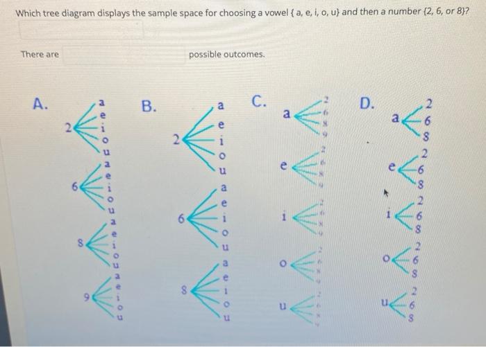 Sample space tree diagram. Virtual Nerd's patent-pending tutorial system provides in-context information, hints, and links to supporting tutorials, synchronized with videos, each 3 to 7 minutes long. In this non-linear system, users are free to take whatever path through the material best serves their needs. These unique features make Virtual Nerd a viable alternative to private tutoring. So you could use these kind of a tree diagram like this to think about the sample space, to think about the nine possible outcomes here. But you could also, you could also do a, I guess you could say grid, where you could write the flavors, so you could have chocolate, chocolate, actually, let me just write the, well no, let me write them out. 2.1 Sample Space A probability model consists of the sample space and the way to assign probabilities. Sample space & sample point The sample space S, is the set of all possible outcomes of a statistical experiment. Each outcome in a sample space is called a sample point. It is also called an element or a member of the sample space. Jul 07, 2019 · Tree diagrams are a helpful tool for calculating probabilities when there are several independent events involved. They get their name because these types of diagrams resemble the shape of a tree. The branches of a tree split off from one another, which then in turn have smaller branches.