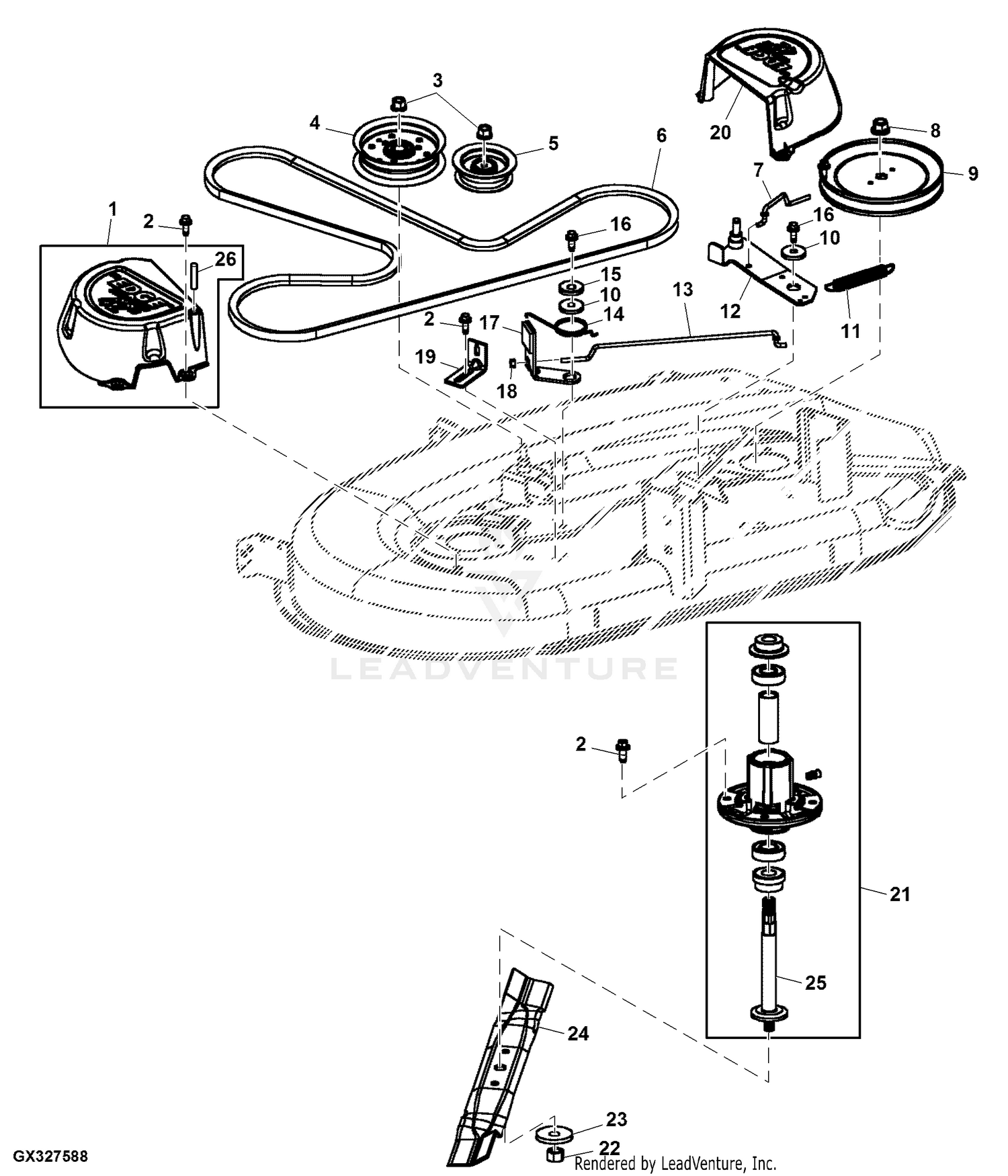 John Deere Mulch Cover 48-inch Deck - GY20417. (11) $38.93. Usually available. Add to Cart. Quick View. John deere la115 mower deck parts diagram mower belt for select john deere mowers these more kevlar cords help outdoors outdoor power equipment replacement engines parts belts my list. This is a current model and under manufacturer's OEM warranty. I broke the belt and need a diagram so I can put a new one on without paying the hefty service.