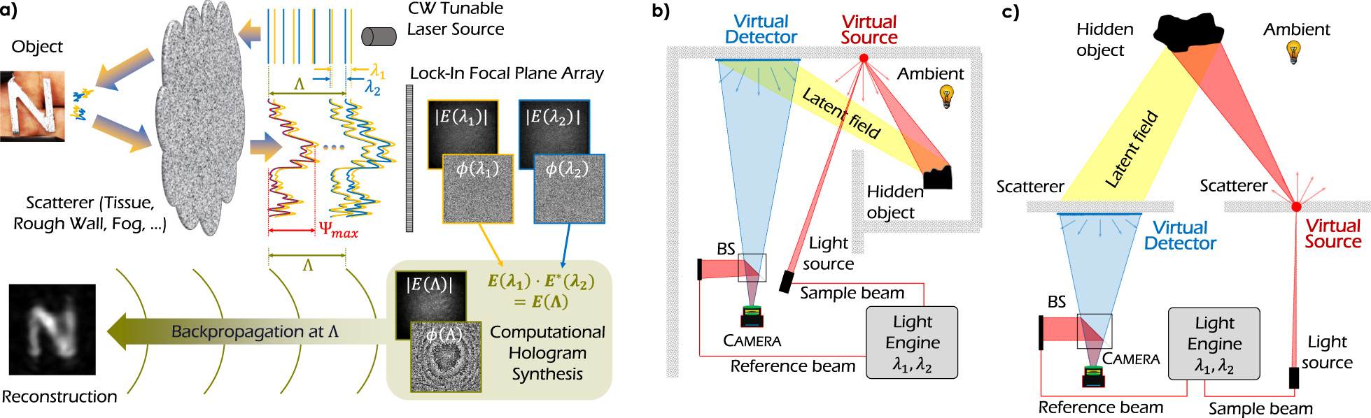 The simplest object is a mirror, and the law for a mirror is that when the light hits the mirror, it does not continue in a straight line, but bounces off the mirror into a new straight line, which changes when we change the inclination of the mirror.