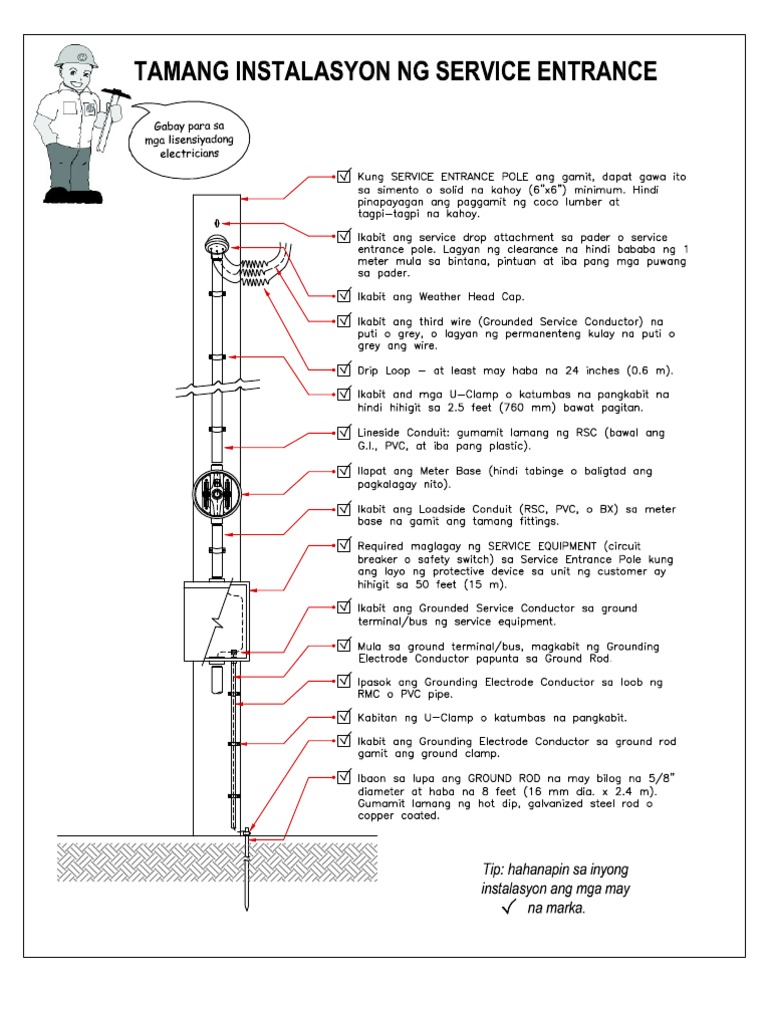 Electrical service amps: How to inspect the electrical service entry wiring for components that limit the electrical service ampacity available to the building - a 200 Amp main panel does not itself assure that 200A is available. How to determine electrical service ampacity - how much electrical power do we have at a building? Electric meter defects that can be determined by visual inspection. Oct 27, 2016 - How to install service entrance? You will only know it if you know its parts. The details of how the service lateral or triplex cable provid... Installing New Electrical Service. Electrical service entry wire how a home system works wiring diagrams specifications your explained installation of house understanding panel single phase three basics for residential gas boilers to install entrance installing new breaker box bo evaluating lawrenceburg utility systems grayson rural electric cooperative guide full diagram using the main. Types of Service Furnished The electric service available is 60 Hertz (cycles), alternating current, single or three-phase. The secondary voltages and connections available are given below: Overhead Service No single-phase overhead services in excess of 150 Amps. Underground Service Single-phase, 120/240 volt, three-wire, grounded