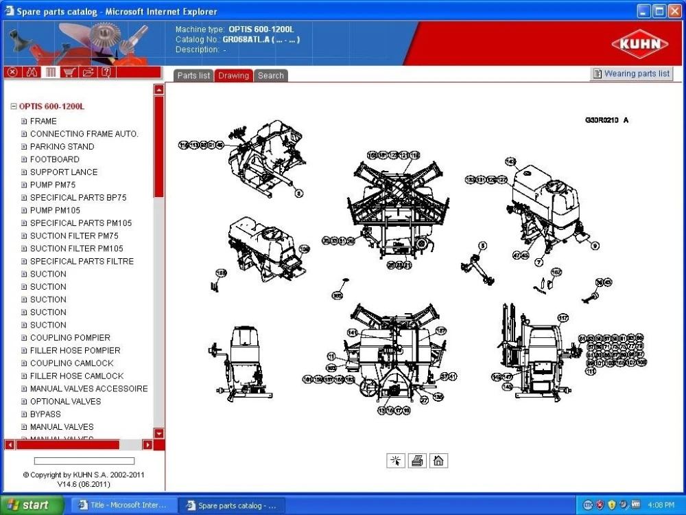 5. Kuhn Spare parts (spare parts Kuhn) spray systems. trailed sprayers. 6. Care roadsides and parks. Shredder for roadside. Machines for Hedge and grass mowing. Salt spreaders, sand and gravel. 7. Shredders. Shredder with horizontal axis . 8. The blank feed. disc Mowers. Mower Conditioners. Tedders. Rakes. 9. Parts Balers Kuhn (Kuhn) Round.