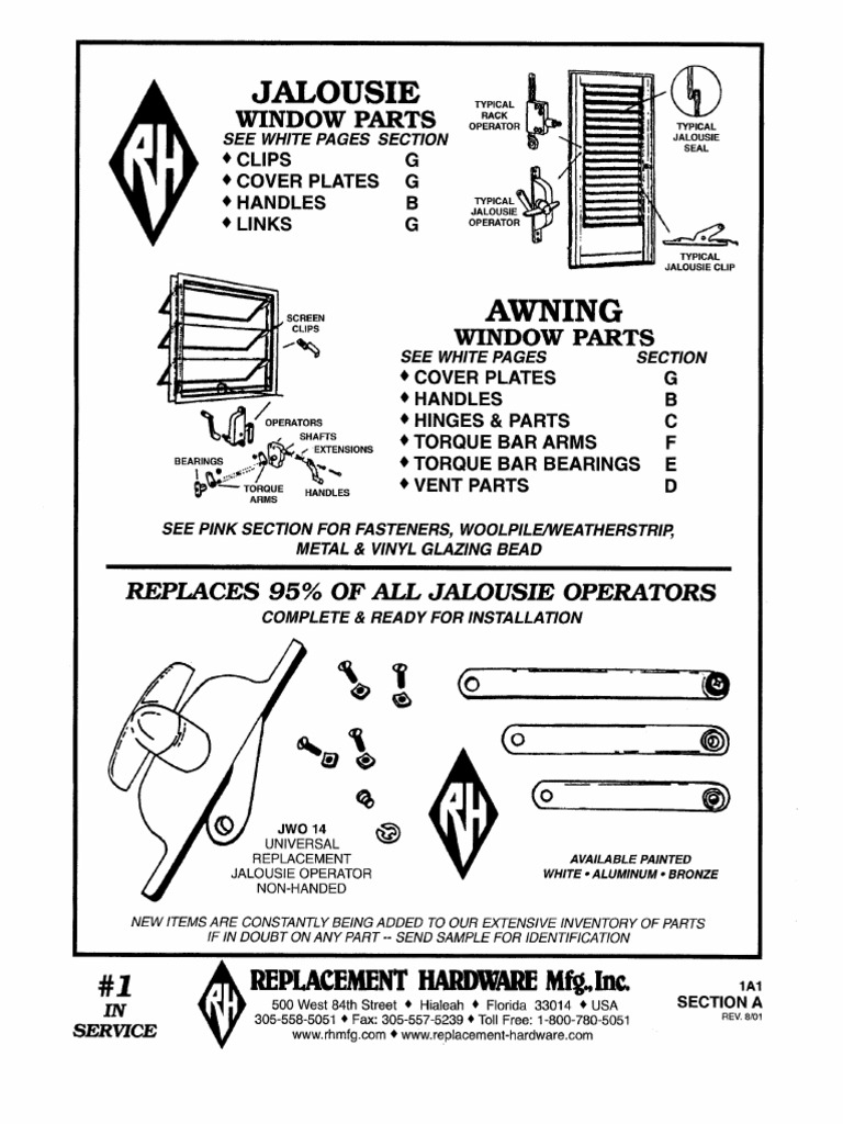 Shop for windows, window parts, replacement glass, awning, jalousie, doors, and much more. Over 10 window styles, 1,000,000+ window parts, family customer service. Come visit us today at our North Miami location for your next home project.
