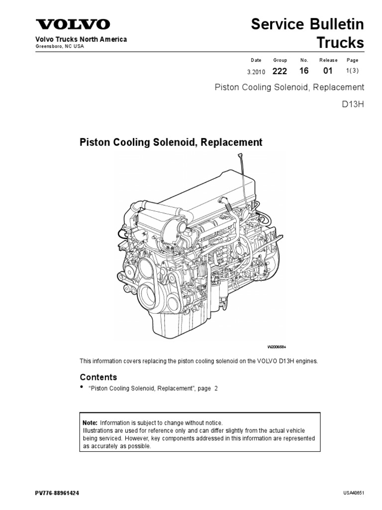 Volvo Trucks North America D Date Group No. Page Service Bulletin 10.2007 253 67 2(9) 2533-03-02-03 Solenoid Valve, Compression Brake, Replacement You must read and understand the precautions and guidelines in Service Information, group 20, "General Safety Practices, Engine" before performing this procedure. If you are not properly trained and ...
