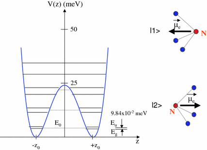 For ammonia, NH 3, the symmetric bending vibration is observed as two branches near 930 cm −1 and 965 cm −1. This so-called inversion doubling arises because the symmetric bending vibration is actually a large-amplitude motion known as inversion , in which the nitrogen atom passes through the plane of the three hydrogen atoms, similar to ...