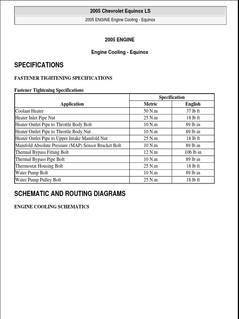 Dec 24, 2014 · Equinox 2005 2007 tor 2006 07 all wiring diagrams for chevrolet looking diagram and pin outs stereo er motor heater problem 6 05 fuel pump relay lt no crank start service vehicle soon chevy egr pig tail onto my driver side front door electrical circuit daytime running car radio audio click gm i have a 06 with power trunk tailgate installation ... 2005 chevy equinox cooling system diagram. It started heating up and nether fan will kick in. With dual cooling fans there are two methods for wiring up the relay kit. This is based on the draw from the fans if the fans are larger and draw more than 15 amps each it s recommended to install a second relay kit as shown below. 2005 Chevrolet Equinox Car Stereo Radio Wiring Diagram Car Radio Constant 12v+ Wire: Red/White. Car Radio Switched 12v+ Wire: The radio harness does not provide a switched power source. Access our free Power Distribution Schematics Repair Guide for Equinox 2005-2007, Torrent 2006-07 through AutoZone Rewards. These diagrams include: Fig. B+ Bus and EPS Fuse (2006) Fig. BACKUP, PWR TRAIN, ENG IGN and 10A ABS Fuse (2006) Fig. ENG MAIN Relay, INJ, EMISS and ETC Fuses (2006) Fig. IGN 1, BCM (IGN), AIR BAG, EPS and CRUISE Fuses ...