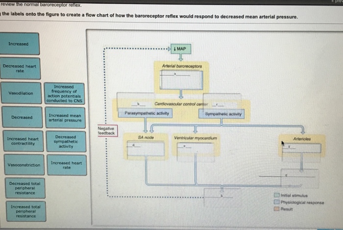 Factors Affecting: Mean Arterial Pressure (MAP) 1a. Decreased blood pressure, decreased blood pH, increased blood carbon dioxide, decreased blood oxygen, exercise, & emotions. 2a. Increased sympathetic stimulation, decreased parasympathetic stimulation, & increased epinephrine & norephrine secretion from the adrenal medulla -> 3a. or 3b. Drag the labels onto the figure to create a flow chart of how the barorefleceptor reflex would respond to decreased mean arterial pressure. You have identified that Mrs. T is using the sympathetic nervous system to keep her blood pressure stable. Part A Drag the labels onto the diagram to identify factors that affect mean arterial pressure. Labels may be used more than once. ANSWER: Correct Running Problem: Essential Hypertension "Doc, I'm as healthy as a horse," says Kurt English, age 56, during his longoverdue annual physical examination. Anatomy and Physiology questions and answers. Drag the labels onto the diagram to identify the components of blood. Reset Help Proteins Fibringes CO2 Neutrophil White blood 22 Platelet Basophil FOOD Red blood Lymphocyte Eosinophil Glucose Albumins Organic molecules Monocyto lons Plauma. Question: Drag the labels onto the diagram to identify the ...