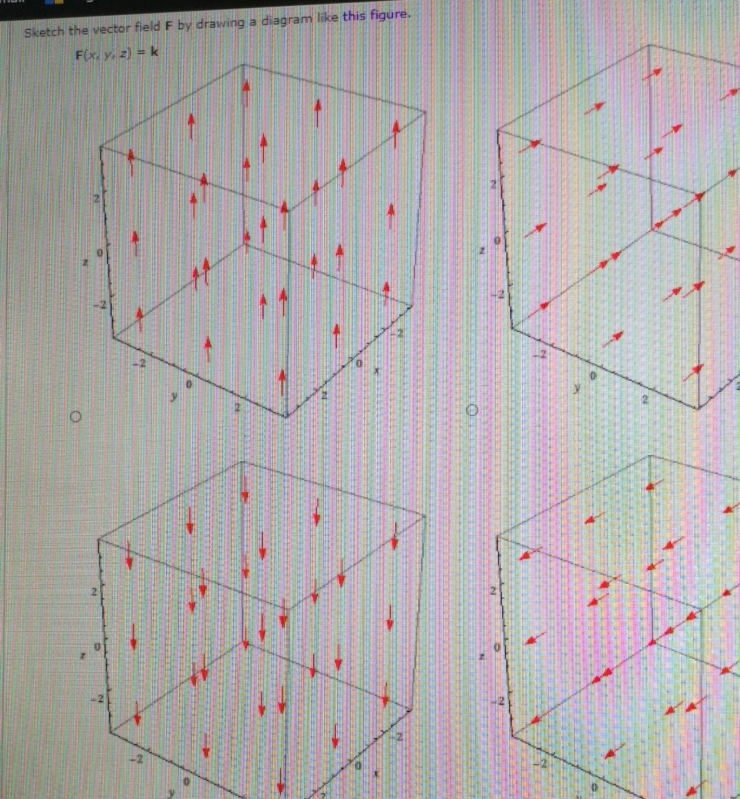 38 sketch the vector field f by drawing a diagram like this figure. f(x, y, z) = k
