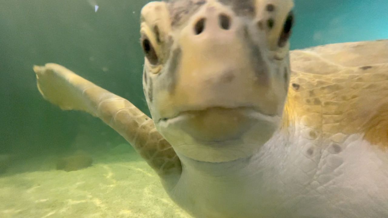 Turtle Tracks - Conservation Tales Only female sea turtles come to the beach to nest, and they pull themselves through the sand with their front flippers. For a large animal - 350-400 pounds! (160-180 kg) - this is hard work, and the effort leaves deep tracks in the sand. Loggerheads pull themselves through the sand with alternating motion - they pull with a flipper on one side ...