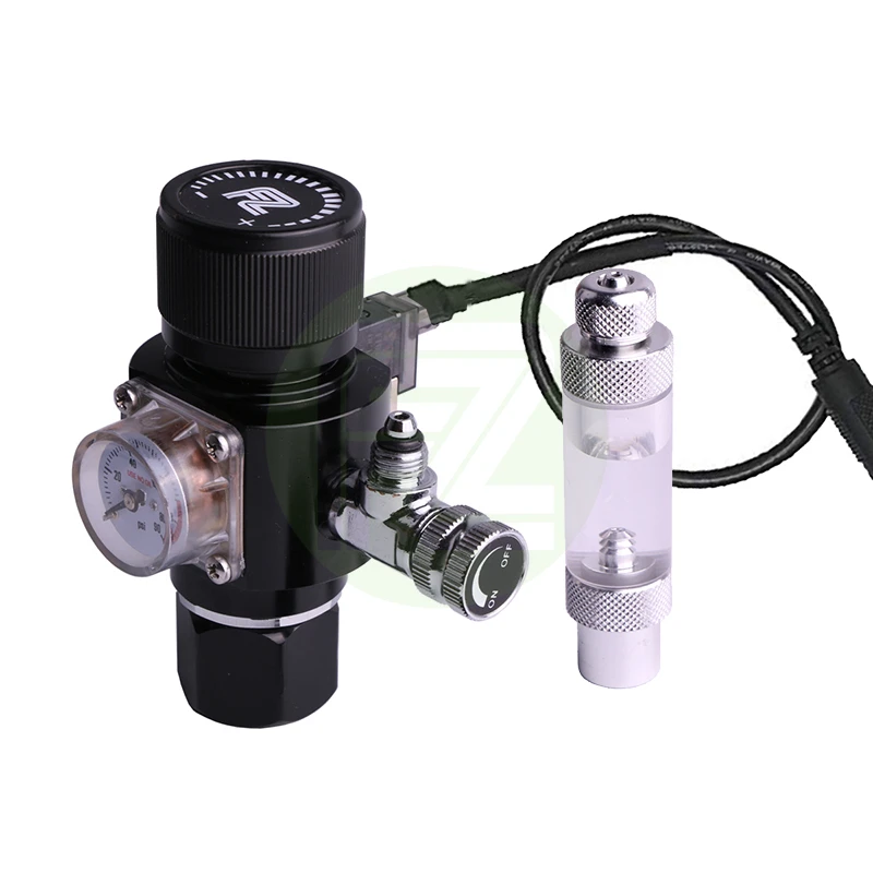 CO2 REGULATOR SOLENOID - Aquatek-california The compact space-saving design of Aquatek CO2 Regulator with Integrated Solenoid Valve for Paintball Tank is ideal for smaller set-up of CO2 systems. Eliminate the need to purchase paintball tank adaptor and unsightly industrial-size CO2 tank, this all-in-one unit is perfect for calcium reactor and freshwater plant CO2 injection applications.