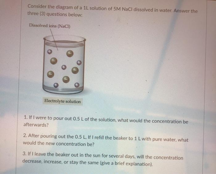 Draw a diagram of table salt (NaCl) dissolved in water. | Quizlet Find step-by-step Biology solutions and the answer to the textbook question Draw a diagram of table salt (NaCl) dissolved in water..