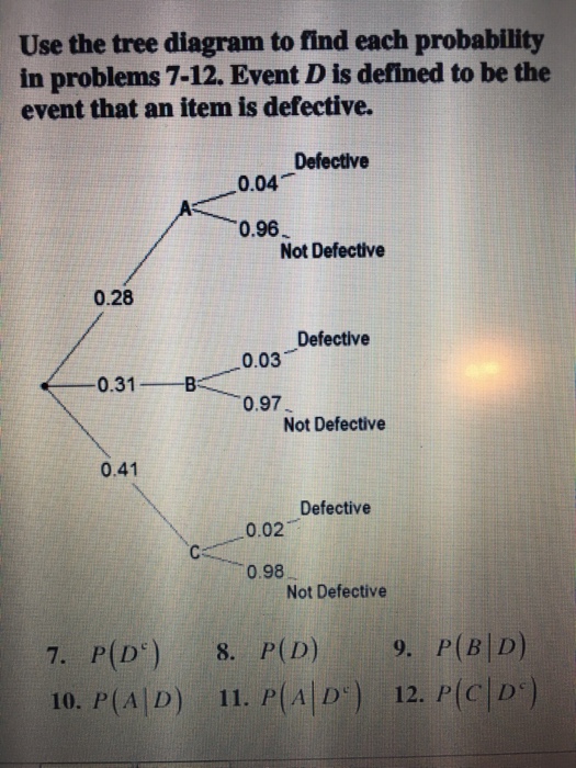 Answered: Find each probability by referring to… | bartleby Solution for Find each probability by referring to the tree diagram above. (a) P(C\A) (b) P(D\B) = (C) P(AnC) = close. Start your trial now! First week only $4.99! arrow_forward. learn. write. tutor. study resourcesexpand_more. Study Resources. We've got the study and writing resources you need for your assignments. ...