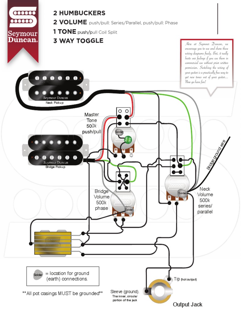 48 Best Seymour Duncan wireing diagrams ideas | guitar tech, guitar... Seymour Duncan wiring diagram - 2 Triple Shots, 2 Humbuckers, 1 Vol with Phase switch, 1 Tone with Series/Parallel switch. Emulating Seymour Duncan Triple Shot w/ Switches I used Seymour Duncan's wiring colors in my drawing. If you have pickups that use different colors The diagram represents 2 ways of wiring up one pickup. If you want both pickups to switch, you will Emulating 2 Triple Shot Rings with 2 Toggle Switches. If you want to use 2 toggles to control both... Seymour Duncan Triple Shot Wiring Diagram | autocardesign wiring diagrams seymour duncan seymour duncan guitar in 2019 the pagey project phase 2 an insanely versatile les paul. A set of wiring diagrams may be required by the electrical inspection authority to assume membership of the residence to the public electrical supply system.