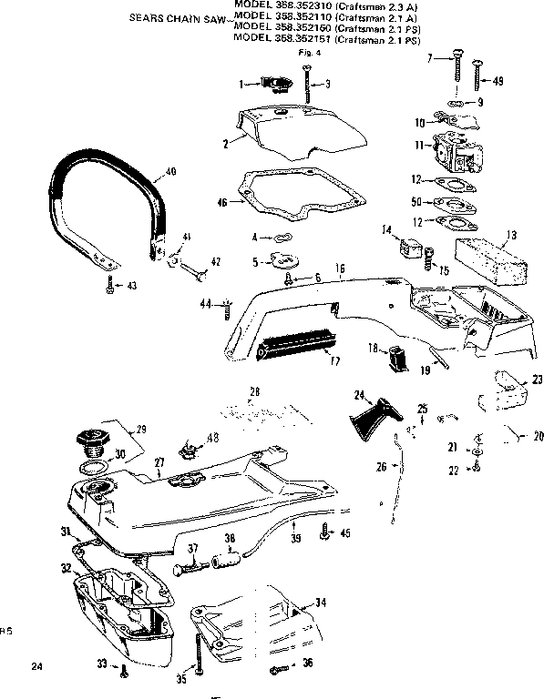 Craftsman | Chainsawr - Chainsaw Parts Online We have used craftsman chainsaw parts for most makes and models. 917. denotes Roper built craftsman chainsaws, 358. denotes poulan built chainsaws. We have lots of used chainsaw parts for different models of craftsman 3.7 chainsaws. Sold Out! poulan xxv 25DA, older Craftsman 2.1, 2.3 chainsaw fuel cap