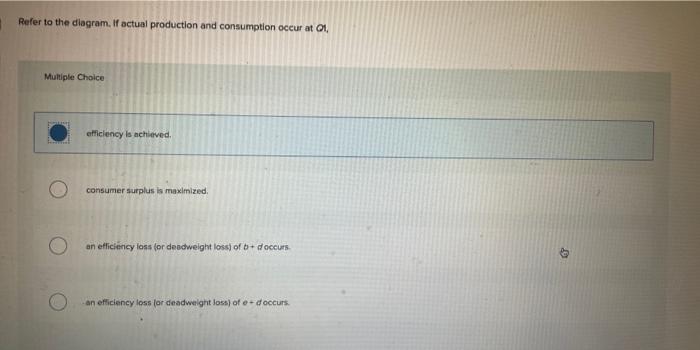 Refer to the diagram. if actual production and consumption occur at q1,