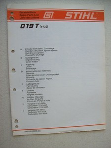 STIHL 019 T - Small Engine Discount Microfilmed parts list are always more up to date than printed lists. A fault on the machine may have several causes. Consult the troubleshooting charts for all.50 pages