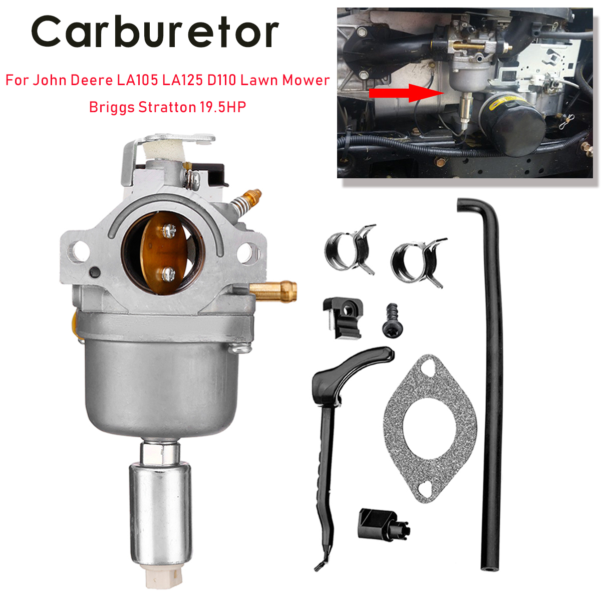 Carburetor For John Deere LA130 Lawn Tractor - Mower Parts Land Description Carburetor For John Deere LA130 Lawn Tractor w/21hp Briggs And Stratton Engine John Deere LA130 Lawn Tractor Shown In Pictures. 2 Year Replacement Warranty! Replace your carburetor if your machine starts up on choke then dies, if it starts with starting fluid then dies or if it needs choke on to run.