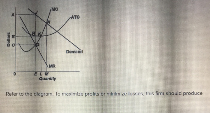 Refer to the diagram. to maximize profits or minimize losses, this firm should produce:. Solved Question 7 Refer to the diagram below. To maximize - Chegg Question 7 Refer to the diagram below. To maximize profits or minimize losses this firm should produce: MC ATC H K Demand MR E L MM Quantity A. E units and charge price c B. E units and charge price A C. M units and charge price N. D. L units and charge price B Question 8 Refer to the figure below. Q11Given the diagram below which level of output should ... - Course Hero To maximize profit or minimize losses this firm will produce: A) K units at price C. B) ... profit maximizing quantity is E units) Q14.Using the diagram below, in order to maximize profits, this firm would produce _____ which would result in _____. A) 0D units, a loss equal ... Q18.Refer to the diagram above for a perfectly competitive producer 80 Refer to the above diagram To maximize profits or minimize losses ... If a pure monopolist is producing at that output whereP= ATC, then: A.its economic profits will be zero. B.it will be realizing losses.C.it will be producing less than the profit-maximizing level of output. D.it will be realizing an economic profit. A. it s economic profits will be zero . 92. Solved Refer to the diagram. To maximize profit or | Chegg.com Economics questions and answers. Refer to the diagram. To maximize profit or minimize losses, this firm will produce: A) D units at price J B) K units at price C. C) E units at price A. D) E units at price B A purely competitive seller is: A) both a "price maker" and a "price taker." B) neither a "price maker" nor a "price taker."