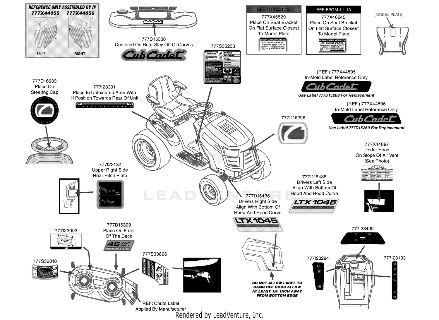 Cub Cadet Tractor | LTX1045 - eReplacementParts.com Need to fix your LTX1045 (13AX91AT010, 13AX91AT056, 13RX91AT056, 13AX91) (2009) Tractor? Use our part lists, interactive diagrams, accessories and expert ...