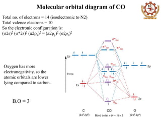 PDF Polyatomic Molecular Orbital Theory - La Salle University MO diagram of homonuclear diatomic molecules • Filling the resulting MO's of homonuclear diatomic molecules with electrons leads to the following results: Bond order = ½ (#Bonding e's - #Antibonding e's) A B 1σg 2σu 1s 1s 2s 2s 2p 2p 3σg 4σu 1πu 5σg 2πg 6σu