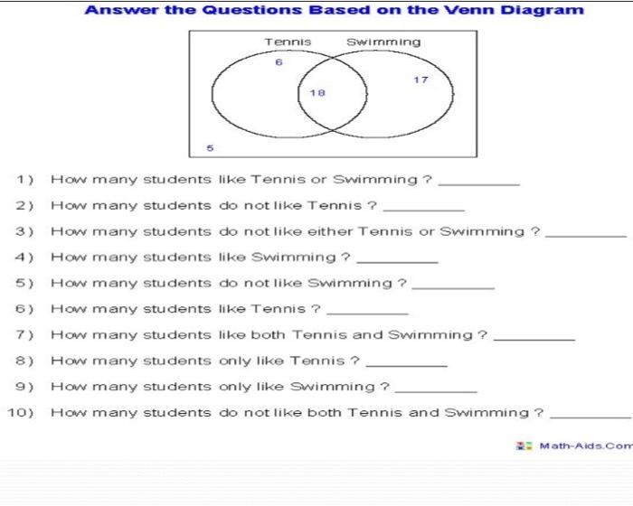 Venn Diagram Worksheets With Answer Sheet I TeacherSherpa These Venn Diagram Worksheets are great for all levels of math. Kids will be able to easily review and practice their math skills. Simply download and print these Venn Diagram Worksheets. Easily check their work with the answer sheets. Math-Aids Venn Diagram 2Set Word Worksheet Downloadable Resource 3 Math-Aids