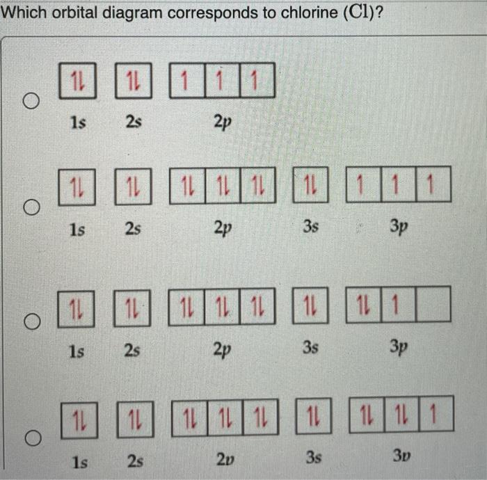Chlorine Orbital Diagram - Learnool The orbital diagram of chlorine shows that the 1s subshell has 2 electrons, the 2s subshell has 2 electrons, the 2p subshell has 6 electrons, the 3s subshell has 2 electrons, and the 3p subshell has 5 electrons. Steps Here's how you can draw the orbital diagram of chlorine step by step. Step #1: find electrons of chlorine
