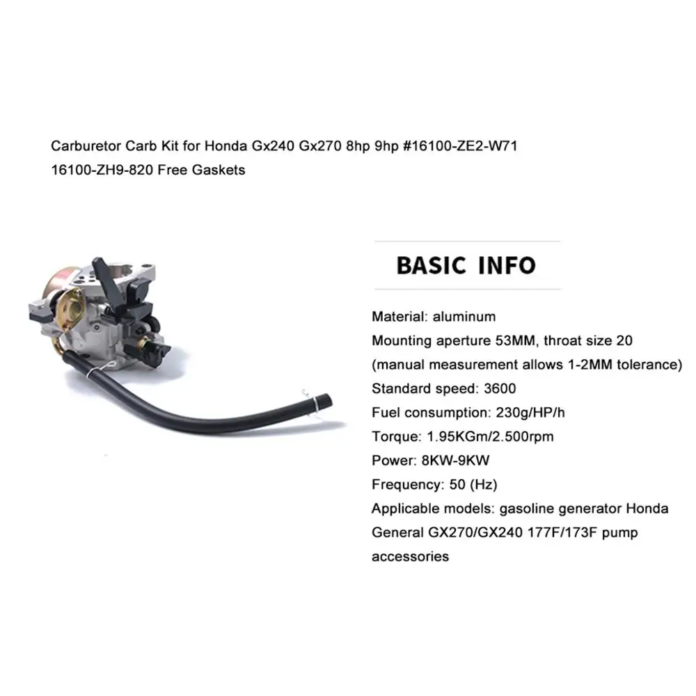Fuel Li GX270 Carburetor for Honda GX240 GX270 270cc 8HP 9HP Engines Replaces 16100-ZE2-W71 1616100-ZH9-820 Carb