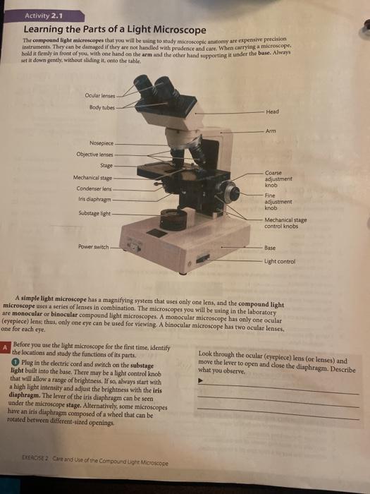 Compound Microscope Parts – Labeled Diagram and their … A compound microscope is the most common type of light (optical) microscopes. The term “compound” refers to the microscope having more than one lens. Basically, compound microscopes generate magnified images through an aligned pair of the objective lens and the ocular lens. In contrast, “simple microscopes” have only one convex lens and function more … How to Use a Compound Microscope: 11 Steps (with Pictures) - wikiHow 21/10/2021 · If you are learning how to use a compound microscope on your own, you may have a diagram that came with your microscope which provides this information. Place your microscope on a clean, level surface near an electrical outlet. Always carry your microscope with two hands. Hold the arm with one hand, support the base with your other hand. 2. Turn … microbenotes.com › brightfield-microscopeBrightfield Microscope (Compound Light Microscope ... Apr 15, 2022 · Brightfield Microscope is also known as the Compound Light Microscope. It is an optical microscope that uses light rays to produce a dark image against a bright background. It is the standard microscope that is used in Biology, Cellular Biology, and Microbiological Laboratory studies. en.wikipedia.org › wiki › EyepieceEyepiece - Wikipedia Blue light, seen through an eyepiece element, will not focus to the same point but along the same axis as red light. The effect can create a ring of false colour around point sources of light and results in a general blurriness to the image. One solution is to reduce the aberration by using multiple elements of different types of glass.
