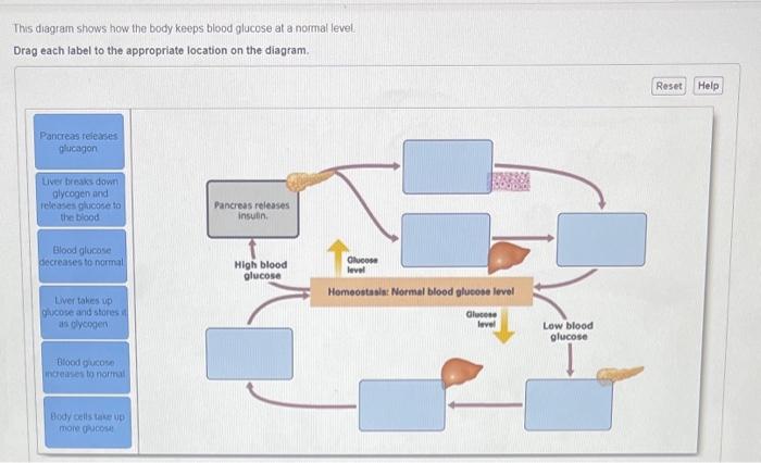 Solved this diagram shows how the body keeps blood glucose at a normal level drag each label to the appropriate location on the diagram.