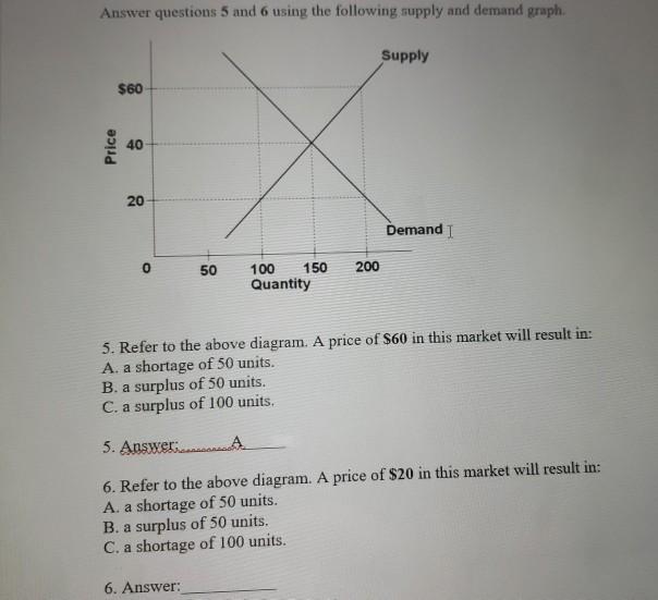 Solved Supply $60 Price 40 20 Demand 50 100 150 200 Quantity - Chegg A price of $60 in this market will result in Quantity Refer to the diagram. A price of $60 in this market will result in Multiple Choice equilibrium es a shortage of 50 units. a surplus of 50 units. a surplus of 100 units. This problem has been solved! You'll get a detailed solution from a subject matter expert that helps you learn core concepts.