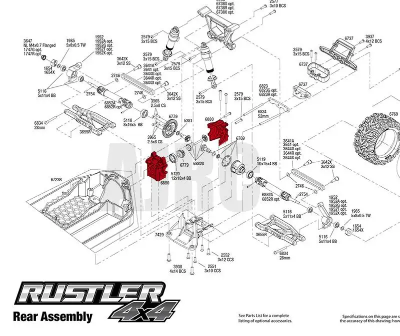 Exploded view: Traxxas Rustler VXL 1:10 - Rear part - Astramodel Home page » Exploded views » Traxxas Rustler VXL 1:10 » Rear part ... Complete list of spare and tuning parts are listed in the Spare/Tuning parts or in manual.