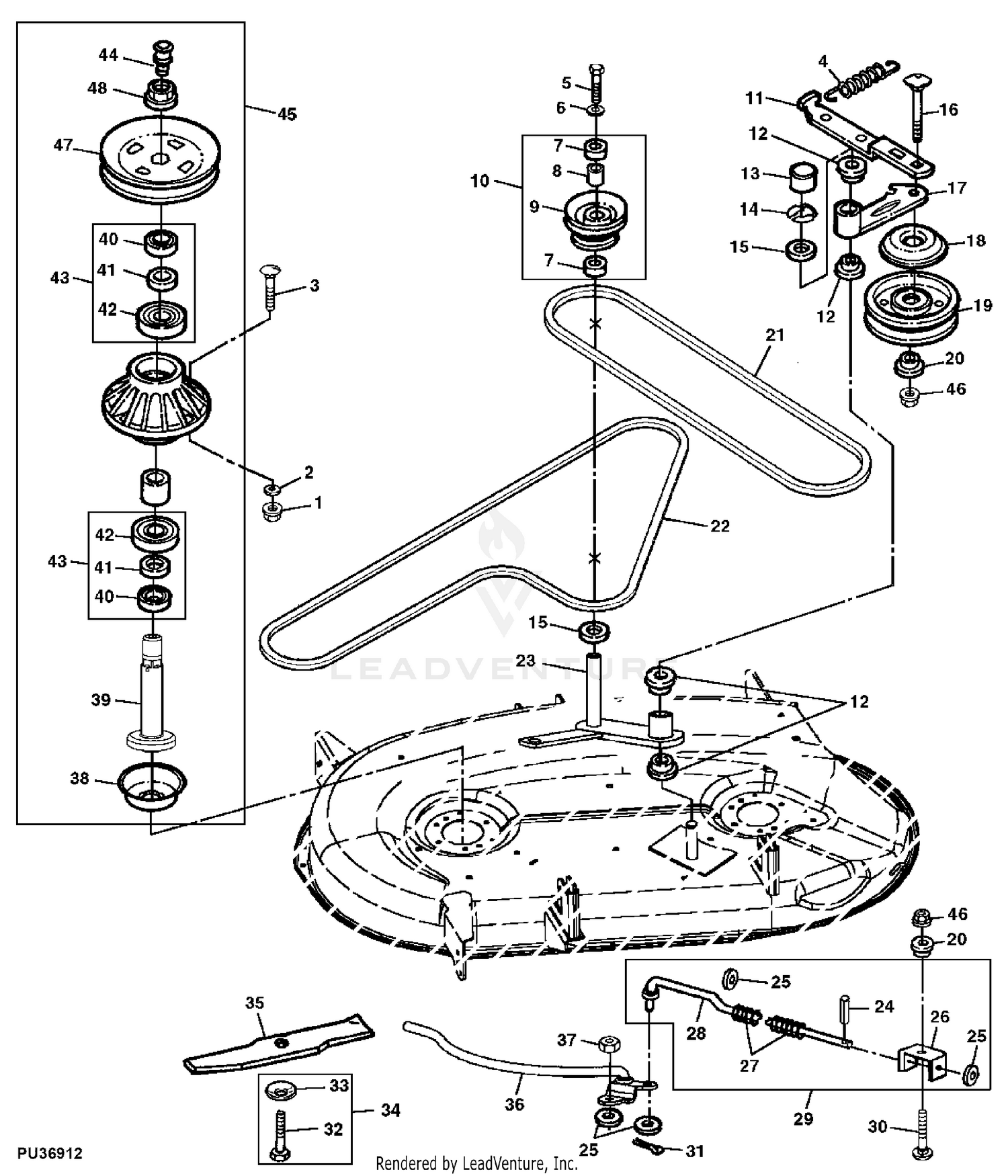 48C mower deck parts for GT235 - GreenPartStore John Deere Idler Arm Tightener Spring - M134312. (20) $15.71. Add to Cart. John Deere Leaf Bagging Blowout Kit 48C Deck - BM19894. (2) $148.73. Add to Cart. John Deere Leveling Gauge for Mower Deck Blade Height - AM130907.