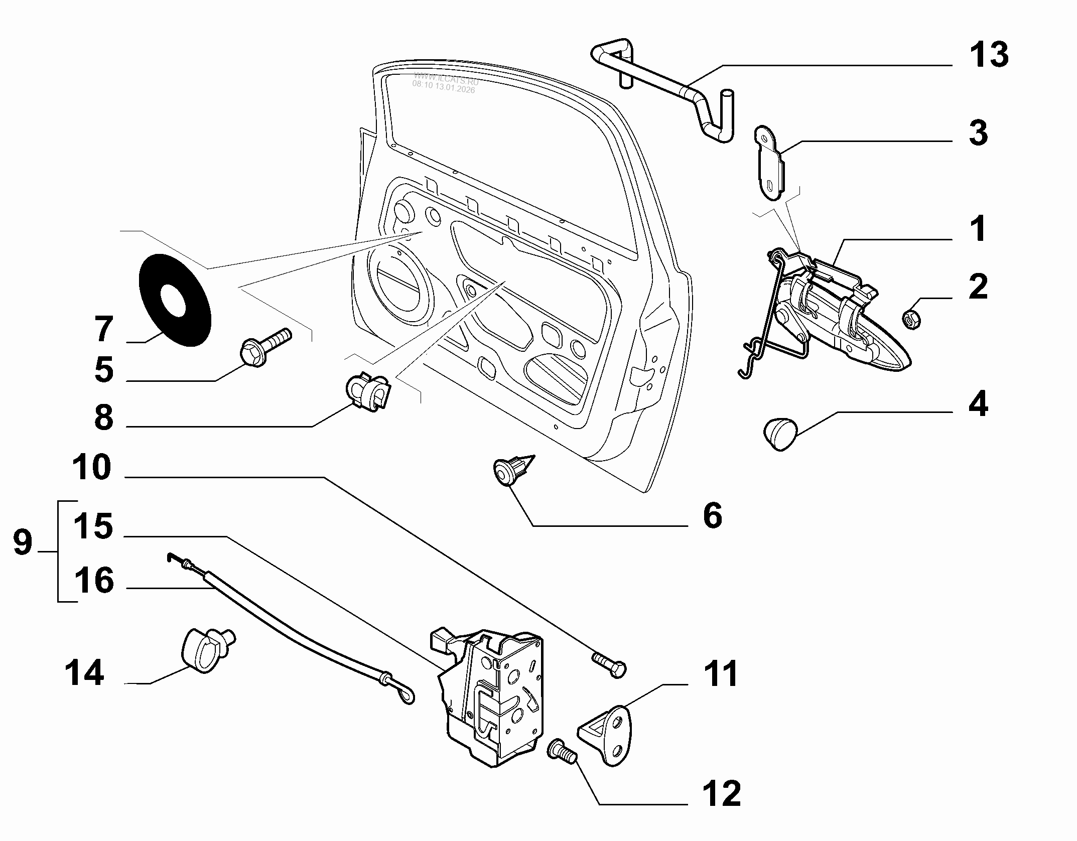 ford focus: door handel focus 2007 driver side, what is the… - JustAnswer Hi, Ok, if you are referring to the interior door handle, it is called the actuating cable(#8 in the diagram). If you are referring to the exterior door handle,there are 2 - the door lock cylinder actuating rod and the exterior door handle actuating rod(#5 and #6 in diagram) - part numbers listed below the diagram :