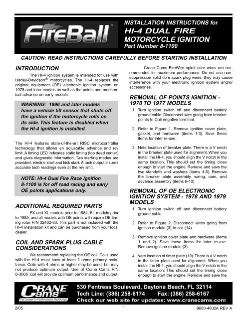 HI-6 CD IGNITION - Yumpu Aug 20, 2015 ... HI-6 CD IGNITION - Crane Cams. ... Tape up any unused wires after completing the installation. Ifthe magnetic trigger leads are not used, ... HI-6 CD IGNITION | Manualzz The Crane Cams HI-6 is an advanced capacitive diselectronic ignition and engine ... When the ignition switch is turned on, the HI-6 completes an internal ...
